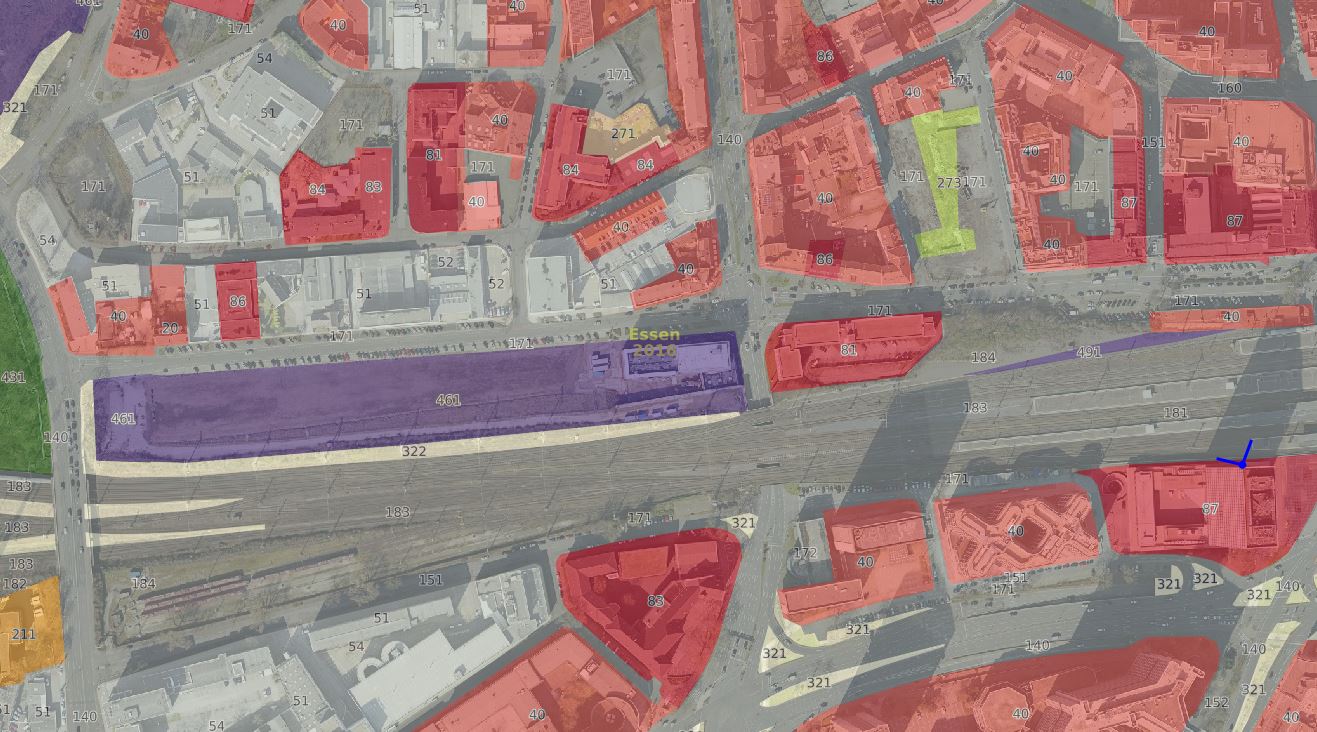 | 184 | Sonstige Flächen | Flächen angrenzend an Schienenverkehr und Anlagen die zu Betriebsflächen der Bahn zählen / zählten. Unterschiedliche Nutzungen sind möglich. Hierzu gehören auch in Bau befindliche Flächen. |  |