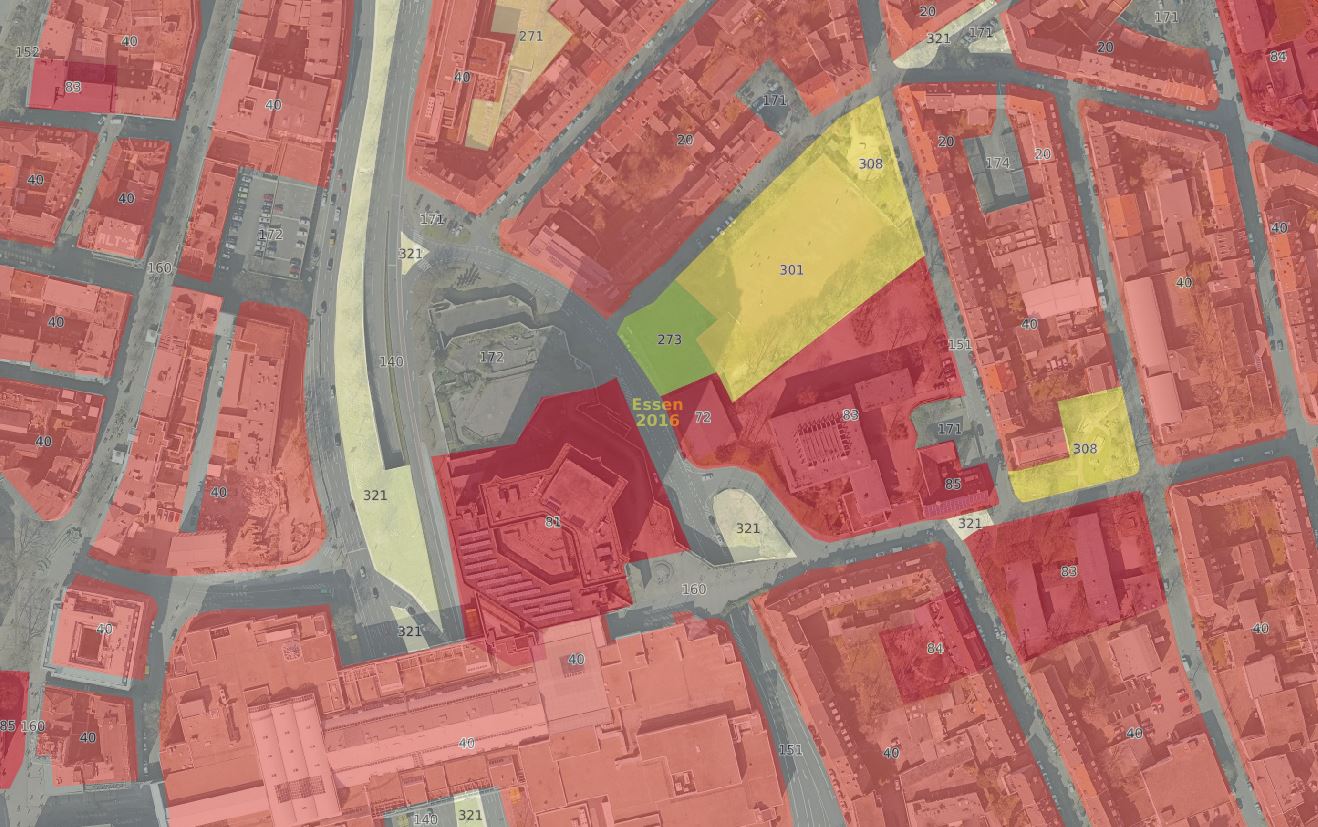 | 174 | Garagenhöfe | Garagenhöfe , inkl. Zufahrten, im Bereich der Nutzungen 10 – 40, wenn mehr als 10 aneinander liegende Garagen mit angrenzenden Flächen und Zufahrten vorliegen. Garagenhöfe, die nicht diese Bedingungen erfüllen, werden den Flächen 10 - 40 zugeschlagen. Garagenhöfe die außerhalb von Wohnbereichen liegen werden separat dargestellt. |  |
